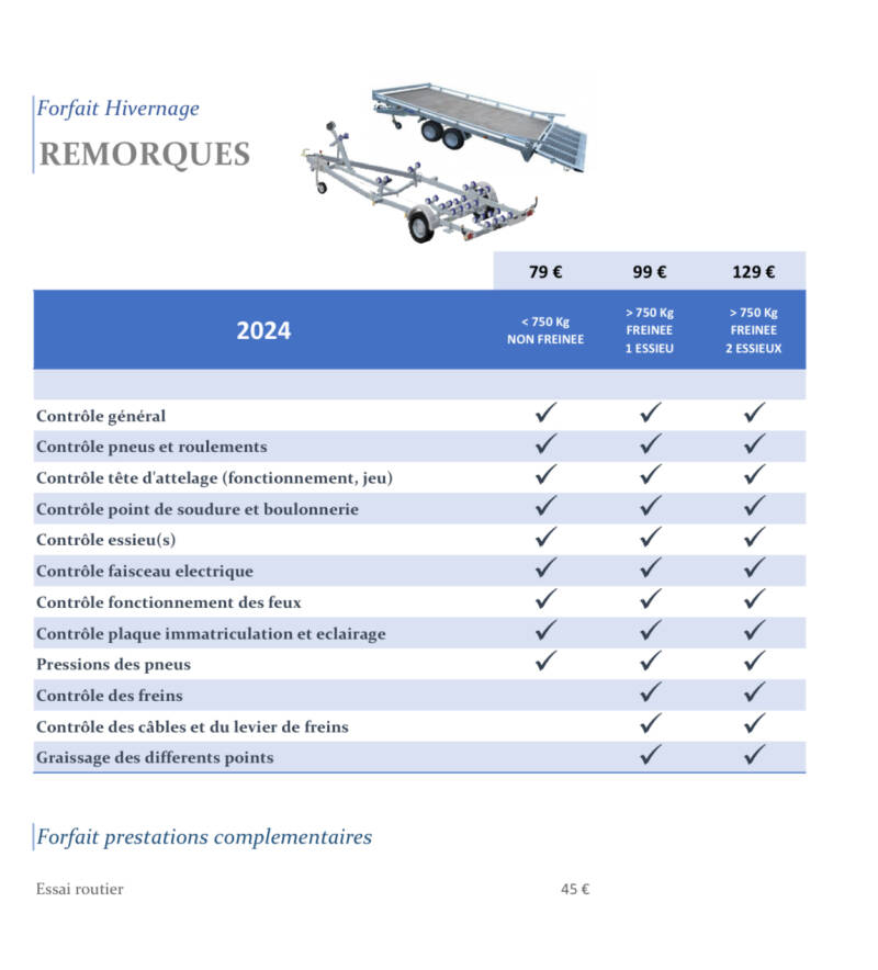Nous vous proposons des forfaits adaptés à votre remorque: PTAC,